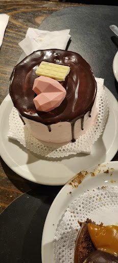 Read moreFuí por un cumpleaños, un amigo hizo la reserva. El ambiente fue tranquilo. Con respecto a la atención: buena. Nos dieron pocas cartas (2) para aproximadamente 15 personas, bastante demorada la elección por eso. Pedimos las mini tortas para compartir (2 mini tortas, no había muchas opciones) para 4 personas, tal vez parece poco pero eran bastantes pesaditas así que de 10 (hasta empalagoso porque no terminamos) Pedí un capuchino y era una leche nada más, no tenía sabor ni a café, ni cacao menos canela . Lo malo fue la demora en dar las infusiones porque había gente que ya estaba terminando mientras otros esperaban. El promedio de gasto fue de $5500 a $6000 x persona (el07/06, puede variar) Lo lindo fue ver la temática de la copa américa en las galletas y demás, le daba un tono pintoresco. Está bastante bien, es espacioso. Un solo baño unisex, al menos en la parte de arriba. Tienen opciones de pago en: efectivo, mercado pago, tranferencias y tarjeta. Supe que al cumpleañero le regalaron una mini torta por el...