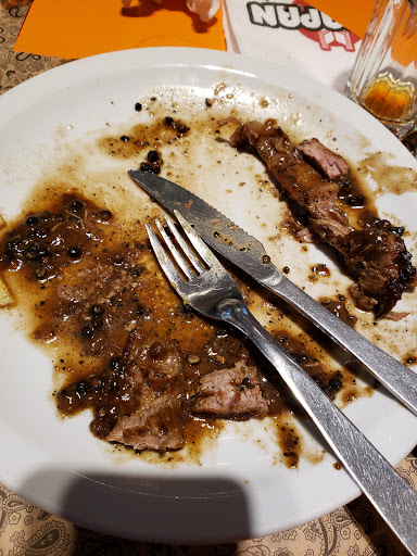 1 a la pimienta y 1 a la caballo. (La carne muy dura y pasada de cocción)(Las salsas fueron desagradables en especial la de la piminta, Era demaciado picante, se podria decir que una persona la cual no consume picante podria llegar a quedar sin apetito)