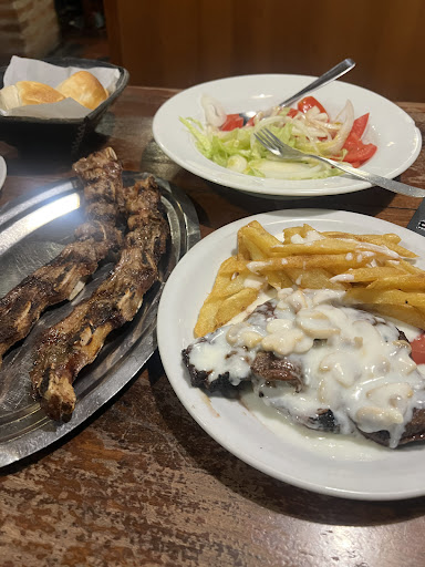 Excelente lugar en todo sentido! La comida rica y abundante. Lo que se ve en la foto es la "media tira de asado", un montón (12 costillas). La milanesa con un muy buen sabor, papas y ensalada riquisimas. Las empanadas de carne y pollo también son ricas y jugosas. El lugar muy lindo afuera, bajo un árbol inmenso y como es en un pasaje es muy tranquilo porque no pasa casi nadie de gente. La atención del mozo muy buena, con la amabilidad justa, sin descuidar a los clientes, pero tampoco ser invasivo. Los precios están muy bien, muy acordes a la calidad y cantidad de la comida. Muy recomendado el lugar!