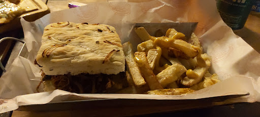 Read moreLa atención de los chicos es excelente; te atienden re bien y son muy educados! Con ese tema 10puntos! Lástima que se tardaron un montón en llevarnos la comida, hubo mucha demora,casi 1hora esperando, había mucha gente! Ahora el tema de la comida , son muy reducidas las porciones, nos juntamos con un grupo de amigos, pedimos pizza ,son muy pequeñas , así q si van con hambre no les aconsejo q vayan a cenar allí; es más para picotear o si son de poco comer, o como en mi caso q éramos muchos y no sustentaba las pizzas ! Tb pedimos papas , pasable la porción q ofrecen ! La bebida algo cara, cómo en todos los bares,ricos los tragos !la cerveza artesanal fue de mi agrado ! El lugar es enorme,nos tocó sentarnos al fondo,cerca del dj! luego de las 12 o tipo 1 de la mañana levantan las mesas y se arma el boliche , me gustó mucho la onda ,nada más q mucho Reguetón , estaría bueno variar un poquito, algo de cumbia u...