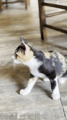 Al entrar a este restaurante, sentí que estaba embarcándome en una aventura culinaria, una que entrelazaba mi profundo amor por los animales con un toque artístico y vibrante, creando una experiencia casi onírica. El primer plato con el que me topé, una reinterpretación audaz de un taco, se sintió más como una escapada culinaria: una fusión entre una fajita de bistec y la esencia tradicional de un taco, elegantemente servida dentro del abrazo de un pan de pita. Cada aderezo introdujo una nueva capa de descubrimiento, una sinfonía de sabores perfectamente sazonados, desafiando mis nociones preconcebidas de lo que podría ser un taco. Esto fue una narrativa en un plato, una audaz partida de lo convencional que resonó con el espíritu de exploración culinaria. Agustina, nuestra camarera, ejemplificó la calidez y el profesionalismo. Su sonrisa genuina y su evidente pasión por su rol transformaron nuestra experiencia culinaria, haciéndola sentir menos como una transacción y más como una invitación a un espacio compartido de pura hospitalidad. Ella tejió comodidad y autenticidad en nuestra interacción, recordándome las conexiones y ricas historias que a menudo se encuentran en los lugares más inesperados. A nuestro alrededor, las paredes adornadas con obras de arte cautivadoras que celebraban la belleza en sus múltiples formas. Cada pieza me instó a profundizar, a perderme en su historia, creando un telón de fondo tan enriquecedor como bello. Una galería de arte de sueños y visiones, un abrazo artístico que elevó toda la experiencia. Pero lo que realmente robó mi corazón esa noche fue sin duda la gatita, una criatura juguetona y curiosa que recorría el restaurante con un aire de exploración inocente. Sus travesuras, desde perseguir bolígrafos hasta saludar cálidamente a cada nuevo visitante, me cautivaron por completo. Observar sus jugueteos, y eventualmente su pacífico sueño, acurrucada en una pequeña bola de pelo, fue por sí mismo un momento destacado. Sirvió como un recordatorio viviente de las simples alegrías que la vida tiene...