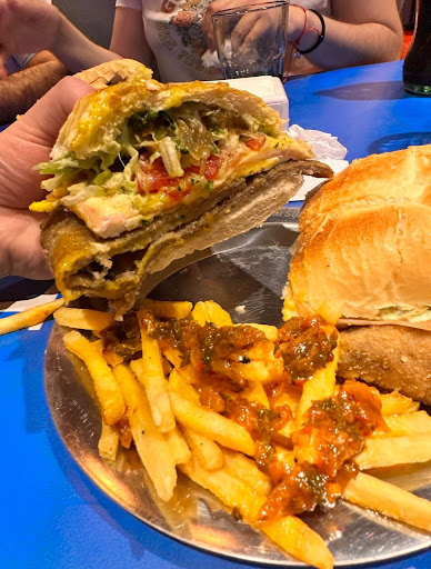 Read moreVeo que no es el primer reclamo sobre la atención de la cajera.pedimos dos sánguches completos, en la imagen no especifica que viene con papas por lo cual pedimos aparte una porción .al momento de retirar el pedido nos damos con que vienen con papas...le dijimos que en la imagen no sale aclarado que incluye las papas..le comenté a la cajera y ella dice que no sabía que no estaba aclarado de forma soberbia y sin darnos una solución. Le pedimos una hamburguesa a mi hija totalmente seca y dura La milanesa hiper finita Lamentablemente la experiencia no fue buena ni tampoco...