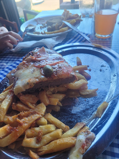 Read moreEl lugar me pareció muy agradable y amplio. Incluso hay mesas afuera bajo una galería y unas sombrillas de paja muy lindas. La vista a la laguna es lo mejor. Igual comimos adentro y hacía calor. Había 3 ventiladores y uno no funcionaba porque estaba averiado. Pedimos milanesas de pollo "Viva la Milanesa" (una especie de milanesa de pollo a la napolitana muy completa). Nos sirvieron un plato que supuestamente era para dos personas, pero resultó ser para cuatro. Por supuesto que nos llevamos lo que sobró, pero también tuvimos que pagar lo que costó ese plato enorme. Estaría bueno que ofrezcan un plato más chico, que alcance para dos personas efectivamente. Las milanesas estaban riquísimas pero la feta de pollo era muy gruesa y, si bien estaba cocida, la textura se presentaba como que le faltaba cocción. Era rara al masticar, algo dura y gomosa, aunque estaba cocida. Igualmente, el sabor, la salsa y las papas estaban sabrosas. Resolviendo la textura del pollo y ajustando la porción hubiera estado perfecta. La experiencia en general estuvo bien, creo que volvería a ir para probar otros platos. Ojalá que tengan en cuenta esta opinión...