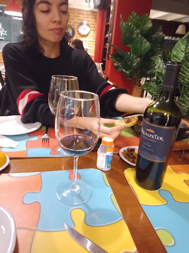 De plato fuerte pedimos un salmón rosado con arroz y lomo con papas a la crema. El lomo estaba rico, venia con una salsa reducida muy interesante y las papas estaban impecables. A mi criterio, era poca carne y muchas papas, pero de todas maneras estaba muy rico en general. El salmón no estaba tan bien. La porción estaba correcta, en la foto pueden verlo. El salmón no tenia sal, no tenia gracia, no tenía amor. El arroz tenia muchísimas aceitunas, que como dije antes, no me gustan. Mas allá de eso, las aceitunas estaban MUY saladas. La gracia del plato es que, como todo estaba muy desabrido, las aceitunas supuestamente balancearían el sabor. Al quitárselas, no tenia mucha gracia. Es realmente una pena que un corte de pescado tan caro sea desperdiciado en una preparación tan pobre. Para tomar pedimos un Trumpeter de la bodega Rutini, vino bastante decente, a un precio razonable. Te traen hielitos y si pedis pueden traerse una frapera con hielo asi enfrias el vino sin aguarlo. El servicio es para destacar, tanto mozos como mozas son atentos, simpáticos y buena onda. Excelente servicio. Fuimos a hora pico de la cena y el lugar estaba bastante vacío, tal vez sea por la ubicación o por la era Milei que nadie tiene un peso. En cualquier caso, es un lugar muy tranquilo, sin bullicio, especial para ir con la familia. En resolución, el lugar esta muy bien. Deberia darle un try mas, tal vez un mediodia y pedir el menú ejecutivo para ver que onda. Merece que vengas a visitarlo!