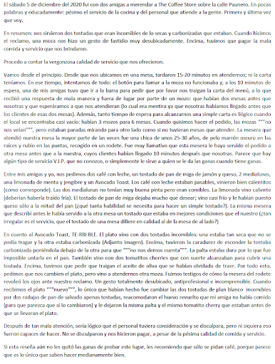 Sábado 27 de Marzo del 2021 a las 18hs aproximadamente, fui a "merendar" con mi amiga. Pongo "merendar" entre comillas porque no pude hacerlo, paso a detallar. Primero, la atención muy mala, nos traen la carta, pedimos pero después de 45 minutos A RELOJ, me acerqué al mostrador a preguntar que había sucedido con mi pedido (2 cafés, 1 jugo de naranja, 1 porcion de torta y 1 "waffle"), otra mesera busco la comanda y no estaba en ningún lado anotado. La mesera que nos atendió con mi amiga, me solicitó recordarle el pedido, ya que nunca lo había anotado. Llega nuestro pedido a la mesa, pruebo mi "waffle" y era un pan dulce frío, apelmazado, DURO, incomible (obviamente que lo devolví y atención a esto) a lo que la mesera solo respondió -"Dale, bárbaro". Ni siquiera fue capaz de decirme si lo quería cambiar por otra cosa o simplemente llevarme uno nuevo y fresco. La porción de torta que pidió mi amiga, no era del día como decía la carta, estaba dura y seca. Charlando con mi amiga, empezamos a escuchar muchos golpes, resulta que una mujer se había quedado encerrada en el baño y las meseras nunca se dieron cuenta. Se tuvo que levantar de la mesa una cliente que estaba merendando con sus amigos para ver que pasaba que golpeaban la puerta. Llamo a las meseras, solo vino una y no pudo abrir la puerta. Se fue por unos minutos dejando a la chica que estaba en el baño sola y volvió con un cuchillo para desatornillar la cerradura de la puerta. Resalto que las meseras no le preguntaron si estaba bien y ni siquiera le acercaron un vaso de agua, la chica golpeaba desesperadamente la puerta y no les importó mucho, solo se excusaron diciendo que "siempre se traba esa puerta" como si fuese una cosa sin importancia. Mínimo un cartel que advierta a los comensales de este inconveniente que tienen en su local. Para finalizar, pedimos la cuenta y como me imaginaba, venía incluido el waffle que no comi y devolví entero. Tuve que avisarle a la mesera para que no lo cobre. Pese a todo esto, siempre tratamos con respeto a todo el personal, pero vimos que la demora era con todos por más lleno y vacio que este el lugar y que muchos clientes se levantaron de la mesa algunos sin carta y otros sin...