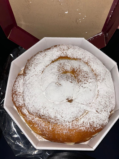 Read moreSinceramente, no la probé, dado que fue un presente para seres queridos; quienes la elogiaron por la cremosidad de la pastelera y frescura de la masa. Había mucha fila para comprar, y pese a la cantidad de gente, te atienden amablemente y te muestran el producto que compraste antes de ponerlo en su empaque. Por cierto, la ensaimada que compré tenia, aproximadamente, el tamaño de una pizza grande. Probablemente son un poco mas caras que en cualquier otro lugar, pero tampoco es una diferencia abismal. El local tiene mesitas en la vereda para tomar un cafe o té -logicamente, acompañando ensaimadas individuales- y un mostrador dentro del local (pequeño, por cierto) donde despachan las ensaimadas, que pueden ser de crema pastelera, dulce de leche o mixta...