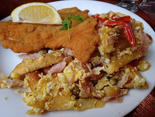 Read moreFeo, sucio y comida fea e incorrecta. No ir! Pedimos un revuelto gramajo: las papas cortadas en triángulos tipo guarnición, un huevo, (uno), revuelto que parecía de otro plato, las arvejas tenían gusto raro, tenía MORRÓN, de dónde sacaron un revuelto gramajo con morón???? El jamón que no era jamón, también muy pobre e incluía papas negras y/o de otro plato que quedó. Pedimos una picada para compartir: el queso de máquina feteado sudado! Jamón de mentira (fiambre de cerdo) vino una empanada partida en dos! Cómo puede ser que una empanada ya venga cortada desde la cocina??????? Salamin, zafaba, cerezas (?) medio huevo duro y una banda de lechuga... Lo peor era la comida no tenía gusto, no parecía ser lo que veías que estabas comiendo, UN ASCO. Le dije al muchacho que nos atendió pero bueno, que puede hacer el mesero, nada. Se disculpó. El lugar tiene MUY, PERO MUY FEO OLOR. Una muy mala experiencia y ví también a otros comensales que dejaban la comida o se la daban al perrito negrito...