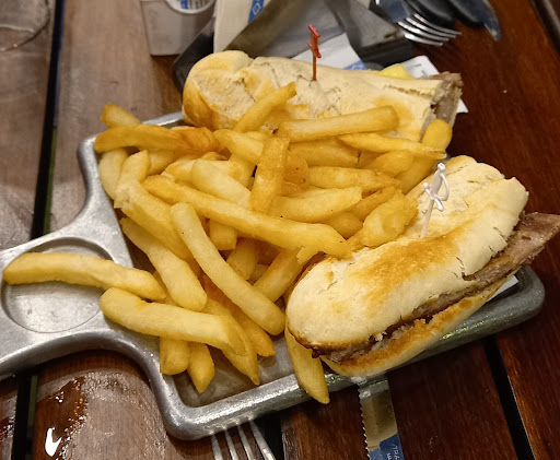 Pedí un menú infantil y un lomito gratinado con fritas ($1000). La mitad del lomito estaba maso, la otra mitad estaba bien, pero ambas mitades eran finitas, tenían mucho pan y poco queso. Adjunto foto.
