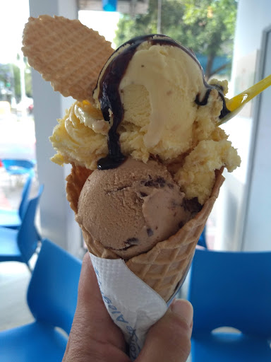 Helado industrial, nada de calidad y menos artesanal; muchos químicos, conservantes y resaltadores de sabor y color.