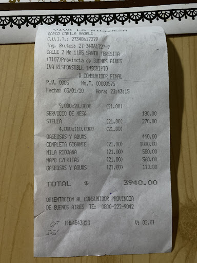 Read moreLamento no poder encontrar nada a favor de este lugar. La milanesa de carne de grosor de una feta de jamón...mi hijo de 7 años me preguntaba dónde estaba la carne. A la milanesa de pollo a la napolitana le faltaba cocción. Las papas fritas nadaban en aceite, pedimos una tortilla de papa a la española( $780, tamaño plato de café) hecha con papas corte bastón (con apariencia de papas sobrantes), las bebidas calientes, pedimos tres marcas de cervezas diferentes de la carta...no habÃa ninguna...finalmente nos trajeron Amstel que era la única q les quedaba( sábado 21:30hs)....una panera para 4 con dos panes y un cuadradito de manteca. Vasos sucios. Precio de la napolitana individual $1380 Mila de carne $980. Cerveza $680, Gaseosas $230, Servicio de mesa $50 x persona....