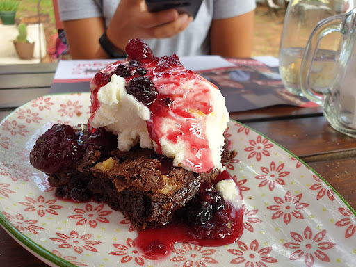 Almorzamos hoy domingo, fuimos sin reserva pero temprano ( tipo 12,30 hs aprox). Encontramos lugar de casualidad así q recomiendo ( sobre todo si son 4 o más personas reservar). Pedimos pastas caseras( raviolones con boloñesa y sorrentinos de calabaza con salsa de hongos, ya que soy vegetariana y no encontré muchas opciones más que pastas o papas fritas y ensaladas). Riquísimos ambos platos, tomamos limonada y de postre no dejen de probar brownie con helado y salsa de frutos rojos. Una delicia Platos abundantes, linda presentación. Trato amable, y ambientado con una salamandra grande y hermosa( recomiendo a la gente del lugar que le coloquen una reja protectora). Precios acordes al lugar. Paguen con gusto porque la comida no defrauda, es exquisita. Sin duda, uno de los lugares más lindos en gastronomía en Tandil que merecen ser conocidos. ( Les debo las fotos de los platos, no llegué a sacar 😝). Ah, si es día de sol o no hace frío pueden comer en las mesas de afuera. Tiene estacionamiento propio. Un...