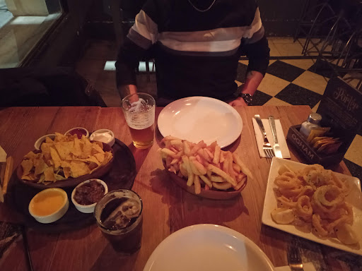 Nuestra experiencia en Ogham de la ciudad de Tandil no fue buena El lugar visualmente es lindo con varios buenos detalles de bar nocturno, una barra de tragos y una barra de cervezas tirada, pero el baño que esta anexado a este sector, poco tiene que ver con el lugar y baja muchísimo su imagen Fuimos a cenar con mi mujer fuera de temporada, estábamos nosotros y dos parejas mas solamente Pedimos unas rabas, unos langostinos rebozados y unas papas fritas, con dos cervezas tiradas, una Golden Ale y otra Red Ale, ambas muy ricas De los tres platos que pedimos, solo uno vino con un dip que era solamente kétchup, nada elaborado, algo que nos sorprendió de mala manera El rebosado de los langostinos eran tan duros y gruesos que se perdía el sabor y consistencia del langostino La atención por parte de la mesera fue escasa, nos tomo el pedido, nos lo trajo y no volvió a aparecer, nos termino cobrando el chico de la caja el cual llamamos para que se acerque a cobrarnos, trajo la cuenta y tardo demasiado en volver Quizá funcione mejor en temporada alta, nosotros no volveríamos a ir ni lo...
