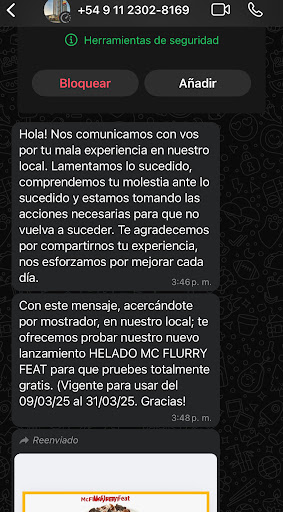 Read moreFuimos con mi hija, la pasamos genial! Fuimos en la tarde, mi hija pidió un sundae de dulce de leche y luego pidió jugo, el sundae sintió que tenía mucho dulce de leche, y era según ella un poco empalagoso, por otro lado el jugo estaba genial pero ella pidió azúcar para ponerle al jugo porque sentía que le faltaba dulce(adjunto: la chica que nos dio el azúcar muy amable). Yo me pedí un café con leche y un par medialunas, todo muy rico! Limpieza, muy bien! A cada rato que se iba alguien de una mesa, venía una de las chicas y limpiaba la mesa. Muy buena atención! Entramos y teníamos que pedir por las pantallas que están en la entrada del local, un chico muy amable vino y nos ayudó con el pedido en la pantalla, ya que nunca lo habíamos hecho de esa forma. Luego fuimos a una de las mesas y nos llevaron el pedido ahí, un muy lindo...