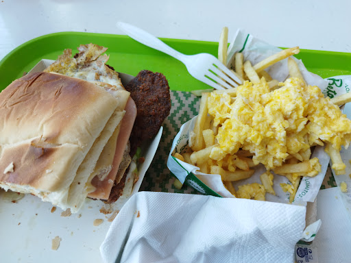 Dentro de la variedad de comidas rápidas del Shopping Paseo del Fuego, es uno de los más ricos. Lastima y algo que deberían mejorar es que de rápido no tienen nada, demoran demasiado hasta cuando vas un mediodía que no hay nadie. Sus precios están elevados. No hay mucho más para decir sobre un local de comida rápida, debería mejorar tiempos de demora y la atención de quien...