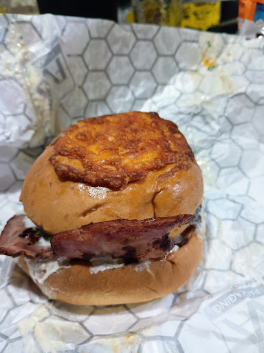 Read moreMuy ricas las hamburguesas, muy llenadoras y bastante bien servidas. Pedí una doble y me dejó satisfecho. Si dice que trae bacon, trae bacon, no como otras cadenas de hamburguesas que te tiran cubitos como para disimular la cantidad. El servicio es muy bueno, y muy eficaz. Son puntuales y amables, le puse 3 estrellas xq no pude interactuar mucho, pero eso habla bien, ya que es un lugar para retirar la comida. Lo que le puedo "criticar" si es que se puede decir así, es que me parece poca la porción de cebollas, considerando el precio y bastante bien de sabor, no son mis favoritas y no las volveré a pedir, pero bien de sabor. El ambiente normal, como dije es un lugar para retirar la comida, aunque es muy confuso xq funciona otro lugar en el mismo ambiente, entonces no sé si se puede comer ahí xq hay mesas, pero hay una cancha y gente mirando fútbol y bebiendo, entonces no sé si se puede comer ahí, si son el mismo lugar o dos diferentes que funcionan en el mismo establecimiento. En rasgos generales, creo que está facil en el top 3 de hamburgueserías de Ushuaia, 100% recomendadas y para...
