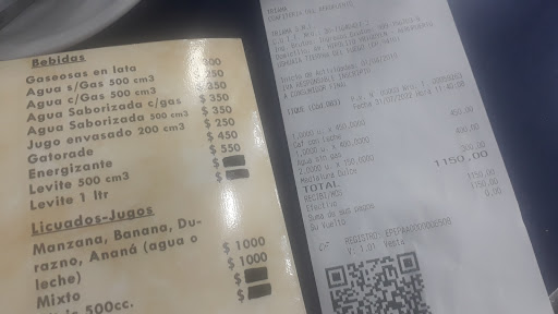 As we arrived 4 hours early on the airport with an empty stomach we decided to go eat at this restaurant. We ordered two pastas of which one there was plastic foil in the meal (so I suppose they just warm the pasta). I paid $56.000 pesos and tipped the service man.