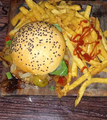 Me gustó. El lugar es rústico, con mesas y sillas de madera. Las paredes te llevan al recuerdo adornadas con detalles de distintas épocas. Pedimos ensalada César y una hamburguesa vegetal, los platos son generosos, además me gustó el detalle de la hamburguesa presentada sobre la tabla (bien cargadita), el precio fue acorde, alrededor de 7500-8000, se come muy bien. Los camareros muy amables y atentos,el pedido no demoró mas de 15 min. Ambientado con buena música y no muy fuerte para poder charlar. Se lleva 5 estrellas completitas. Para mejorar: la cerveza mas fría, pero igual estaba rica la Scottish.