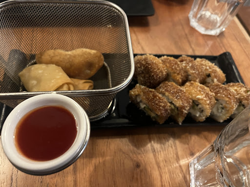 Read moreSushi raro... La verdad el arroz estaba muy cocido y sin sabor... Después de probar creo que 10 variedades, en ningúna pudimos sentir algún sabor bueno, todo muy suave y sin sazón... El salmon sin sabor y con colores muy oscuros ... Ofrecen SUSHI LIBRE, pagas la opción PREMIUM y el 80% de las piezas no tiene salmón ... Empiezan ofreciendo piezas feas y en la 2da tabla vimos algo de salmón. Ofrecen ahumados y braseados, y ni los vimos. Preguntamos si ofrecían algo a cumpleañero (sino llevamos nosotros) dijeron que si, que lo presentaban en una tabla y se olvidaron, ni el feliz cumpleaños le cantamos. Las mesas muy chiquitas para 2 personas, súper incómodo. Las limonadas calientes, casi tibias, tuvimos que pedir hielo... La camarera que nos tocó estaba muy poco atenta a la mesa para levantar las bandejas y traer las siguientes opciones. Nos fuimos después de casi 2 horas y comer 15 piezas cada uno (la mayoría sin salmón) ... Aún no podemos entender como la salsa de soja , parecía salsa bs as, peor no poder comer las piezas con soja... El baño horrible y se veía sucio y con mesas , y sillas y cosas de salón, ojalá no nos allá tocado una mesa o platos que estén en un baño al público... En un momento de la noche se empezó a sentir un olor como a podrido en todo el local, las meseras abrieron la puerta (que estaba con llave en todo momento, nos abrieron ellas a llegar) para que se vaya el olor. No volveríamos por el ambiente, por la atención y mucho menos por el sushi... Se diría LO BARATO SALE CARO , pero no, gastamos 30mil por persona por 15 piezas y 2 vasos de limonada caliente, hay lugares con mejores sabores por menos plata . Un desepcion . Le pongo 2 estrellas porque a pesar de que estaban re boludeando entre ellas, las chicas amables. Y segundo la presentación en barco y algunas piezas estaban ricas, no sabemos cómo se llaman pero las marcamos en las últimas fotos las marcamos, el jengibre...