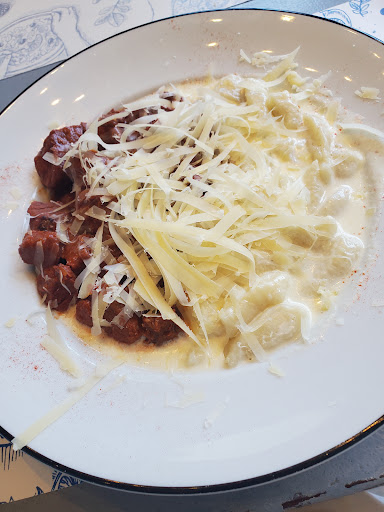 Hoy fuimos a un evento, un almuerzo post casamiento de unos amigos, eramos como 30 personas. Nos prepararon una mesa larga arriba, sólo para nosotros. La atención un 10, todos muy simpáticos y atentos. Nos dieron un menú de 3 pasos: Entrada: rabas, jamón crudo, burrata, rucula, tomates cherry y tomate seco. Nos dieron ambas combinadas. Plato principal: ojo de bife con puré, papines y una reducción de vino merlot; un pollo relleno tipo al champignone o sorrentinos verdes (opción vegetariana). Podías elegir uno de los tres. Postre: tiramisú o brownie con helado de pistacho. Podías elegir uno de los dos. Y café. Además de la panera con variedades de panes como blanco, integral, uno de vino, galletas crocantes. Aceitunas y queso untable. Para tomar había opciones como vino, gaseosas, agua. Champagne para el brindis. Impecable. Todo super rico. Contemplaban requerimientos como si no comes algo para amoldar el plato. Nos encantó la comida y la atención. Excelente relación calidad-precio. Definitivamente lo recomiendo y voy a volver a probar el brunch (una torre que se veia exquisita) y varios otros platos que se veían...
