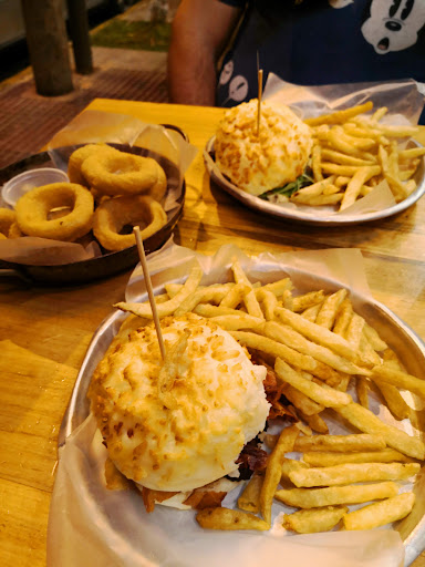Read moreLlegamos a eso de las 21:00 y había bastante espacio para sentarse, a medida que pasó el tiempo se llenó así que recomiendo ir temprano. Éramos 7 personas y no nos dejaron juntar 3 mesas (bajas) para poder sentarnos cómodos, nos "invitaron" a sentarnos en esas mesas altas incomodísimas con banquetas que ni siquiera tienen respaldo, deberían repensar estas cosas porque puede ser determinante a la hora de elegir un lugar para salir. Finalmente optamos por hacer lugar para que los 7 entremos en las dos mesas bajas. Con respecto a las cervezas no puedo opinar porque no tomé, si probé la limonada casera que estaba muy rica y la recomiendo, lo mismo con la hamburguesa Cheese & Bacon, el pan es una ricurita y la burger estaba bien cocida. Las papas con cheddar y bacon otra opción para recomendar. Sonó Miranda durante gran parte de la noche y luego Queen, un éxito la música también. Volveré? Probablemente sí porque la comida es buena, abundante y el precio es razonable pero si llegamos a ser más de 4 personas propondré otro espacio donde no te obliguen a sentarte en esas mesas altas incomodisimas que tienen todos estos...