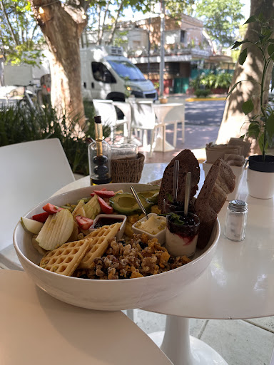 Read moreHe ido a desayunar y me lleve una GRAN decepción. Primero hablo de la comida y después del precio. Pedimos un brunch para compartir, traía un MONTÓN de cosas pero todo lo que traía era DE MALA-PÉSIMA CALIDAD. De vuelta, muchísima cantidad de pésima calidad. El café era INTOMABLE, no pude beberlo. Quemado, feo. En la bandeja venían 2 rodajas de pan, del ancho de la pata de un elefante, pésimo el sabor, insulso. Con huevos revueltos que estaban “bien” (si no sabes hacer huevos revueltos, hay que retirarse). Muchísima fruta, la manzana roja estaba ARENOSA, dos trozos de frutilla, una banana oxidada en rodajas. Lo rico era la manzana verde. Una palta partida en dos (si eso es avocado toast, cierren el chiringuito). Yogurt ácido con frutos del bosque. Mermelada de tarro (extra dulce). Y granola casera que estaba “meh”. Gastamos $13000 para no disfrutar de nada más que comer de un balde para el perro (adjunto foto). Las chicas que atienden, divinas, súper cálidas y buena atención pero lamentablemente uno no se alimenta de esto. No vuelvo a...