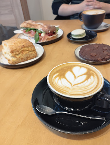 Read moreMuy rico café tiene un perfil ácido interesante, preparado a la temperatura correcta, se nota el conocimiento y la dedicación que hay detrás. En cuanto a la comida todo cumple pero acá se viene plato por plato lo que nos pareció. Ciabatta: mucho jamón crudo y rúcula (bien) el brie se pierde un poco con el queso crema (mal) y el tomate es como si no existiera (mal) sería mejor un tomate seco o más cantidad de tomates. Scon de queso: poco queso y la base es dulce, para eso sería mejor que tenga más cantidad de queso o quesos más picantes. Buenísimo que es enorme y viene calentito. Sugerimos agregar un poco de queso crema al costado. Cookie chocolatosa: riquísima pero muy dura Macaron de pistacho: 100000000/10 es lo mejor por lejos, delicado, bien hecho y es una explosión de sabor. Relación precio/calidad está más que bien. Voy a volver todas la...