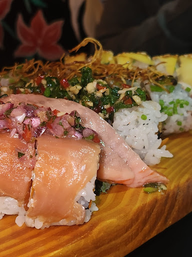 Read morePedimos langostinos empanizados de entrada (6u), muy ricos y el rebozado un 10. Vienen acompañados de una mayonesa de wasabi ($19.000). De plato principal pedimos 40 piezas surtidas, tamaño normal, buena cantidad de relleno. Algunos rolls tenían picante y otros mucho wasabi, mucho ($58.000). Personalmente no me gusta para nada el wasabi ni el picante, se que debería haberlo avisado al momento de ordenar, pero como estoy acostumbrada a que siempre venga a parte no lo tuve en cuenta (también me lo podrían haber avisado, por eso pongo un 4/5). De postre pedimos una especie de cheescake de frutos rojos con una base de coco rallado ($10.000), le faltaba un poco de sabor y estaba semi congelado. El ambiente muy cálido, la atención muy buena. Con bebidas gastamos casi $100.000, un poco elevado para 2 personas y comparando con otros restaurantes de...