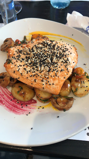 Read moreNo se dejen engañar con la Foto. Como todos los sábados somos concurrentes de este restauran después de comer mal en varias oportunidades este sábado le dimos otra oportunidad. Y la verdad DECEPCIONANTE éramos 5 comensales pedimos un salmón silvestre, el de la foto y un pedazo se podía comer pero estaba seco pero el otro pedazo estaba feo catingudo viejo y rancio. La verdad no pueden servir algo así. Luego pidieron una entraña que viene con chorizo y morcilla. La entraña estaba quemada y lo sirvieron tibio pedimos que lo calienten y llego más frío que anteriormente horrible duro seco y quemado, sin contar que la morcilla y el chorizo estaban fríos. También pedimos unas mollejas con papas las mollejas estaban bañadas en unas salsa e impedían ver que las mollejas al cortarla estaban rojas mal cocidas e intoxicaron a la persona que las comió,. Decidimos sacarnos el mal gusto de la comida con un rico postre y cafés. Lo único rico era el volcán de chocolate porque el creeme Brule siempre viene mal cocinado y es líquido. Y los cafés helados ni los pudimos tomar. Le comentamos todo esto al mozo pero nadie se acerco a ni siquiera a ver cómo estábamos, ni a pedirnos disculpas por lo sucedido. Una falta de respeto bajo totalmente la calidad del lugar no sirven nada en condiciones. Mirabas para los platos de alado y las papas crudas. Realmente estaría bueno que atiendan mejor a los clientes. Y que modifiquen porque los cocineros están llevando a...