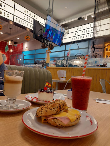 Decepcionante la atención, fuimos a merendar. Nos pedimos una limonada, un capuchino un cheescake y un baguel con huevo jamón y queso, las cosas nos llegaron por tandas, primero llego el cheescake para mi con la limonada de mi pareja, a los 5 min veo que mi capuchino estaba en la barra, tardo otros 5 min en que lo lleven a la mesa (se enfrió) a los 10 min traen el baguel que era para mi pareja. Obviamente esperamos a que llegue todo para comenzar a tomar y comer. Mi capuccino frío pero todo bien, pedí otro café para acompañar el cheescake (mi pareja se tuvo que acercar a la barra para pedirlo porque los mozos no hacen contacto visual) era un cortado en taza grande y me lo traen en jarrito. Una lástima, el lugar es precioso, la comida está bien. Pero hay que mejorar el servicio, o poner más mozos, al menos uno más, son solo 2 atendiendo. Ellos 2 tomando pedidos, despachando y desbarazando, aunque sea adicionar un runner para que...