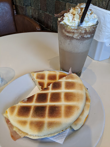 Read moreUna cafetería cómoda con buen servicio, y música tranquila para pasar la merienda/desayuno. Con una buena variedad de cafés, platos dulces y salados, tanto como para merendar/desayunar o almorzar. Justo en el sector donde me senté, no había aire acondicionado ni ventilador, por lo que el calor del verano puede sentirse más en un lugar cerrado. Pero esto puede variar según la ubicación, también teniendo espacios exteriores para sentarse. Lo más sobresaliente fue el sabor del café (con chocolate, canela y crema) y el tostado que probé. Recomendable para una salida rápida de la típica...