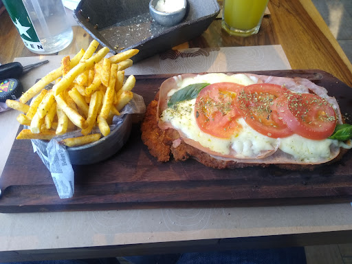 Read moreHace mucho tiempo que no comía tan bien y en un restaurante tan lindo, como solíamos ver en CABA. El ambiente, la decoración, la simpatía de Florencia y Rocío y especialmente, Marcos, que fue quien me atendió y asesoró en cada elección. La cantidad y calidad de cada producto, justifican los precios que tampoco son exagerados! Todo es elaboración propia, menos el helado... pero también estaba exquisito. Servido a buena temperatura y con la demora debida (no mucha), ya que todo está recién hecho! Fui a las 16:30 h y estaba casi vacío lógicamente. Mejor para tomar fotos y vídeos del lugar. Un detalle que quisiera que tuvieran en cuenta por favor, es que haya enchufes en cada mesa para cargar el celular. Otro detalle que no me fijé es si hay baños en la planta baja. La próxima lo verificaré🤭 Al pedir el plato principal, se acercó Marcos con una tabla de panes, Berenjenas en escabeche y Humus de garbanzo! Exquisito! La limonada con menta y jengibre también me encantó. Pedí bondiola braseada y papas sazonados, q estaban en el punto justo de sabor pero no picantes! Por suerte, le pedí que me sirviera sólo media porción así repetí estas delicias al cenar en mi casa!!! Deliciosa la bondiola con esa mezcla de sabores. Luego pedí un volcán de chocolate, que viene acompañado de helado de pistacho y coulis de frutos rojos! Otra excelente combinación de sabores. El chocolate dentro del volcán, perfecto (como se ve en el video). La masa del volcán también muy rica. Tengo que regresar para disfrutar otra vez de estas comidas, que tienen mucha variedad y opciones de precios! Tienen mesas también en el exterior muy lindas! Muy...