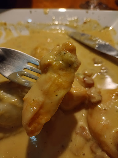 Read more5 estrellas por todo. Pedimos sorrentinos y hasta la presentación en el plato es muy buena, un detalle que no parece ser relevante pero importa. No venian ni pegoteados ni desarmados y la masa en su punto junto. Unos de los platos era de sorrentinos de ciervo con salsa de pacenta y crema. El ciervo estaba exquisito, lo interesante es que podias distinguir o separar el sabor de la carne del resto de los ingredientes, otro punto a favor dado que no era una "pasta" con "sabor a". Abundante relleno que maridaba espectacularmente con la salsa que también era abundante (yo mojé el pan😋). El otro plato también de sorrentinos pero de calabaza y roquefort. Cantidad de relleno muy bien. Sabor exquisito, sobresalia el sabor a calabaza con un fondo de sabor suave por el roquefort, nada invasivo. Para el amante del roquefort tal vez le puede parecer demasiado suave pero tener en cuenta que es un sorrentino de calabaza. El restaurante precioso, ordenado y pulcro. Nos atendió Lauro, amable con ritmo citadino y firme que nos recomendó algunos platos y creo que mas allá de las recomendaciones , todos los platos merecen...