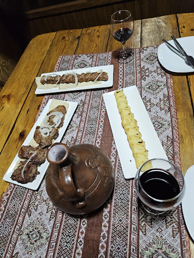 Read moreSiamo stati accolti da una donna che parlava solo russo e per capirci abbiamo dovuto usare la lingua dei segni, poco male eh, ma nel 2023 ti aspetteresti quantomeno l'inglese nelle strutture ricettive. Facciamo un ordine segnando i numeri del menu in autonomia su di un foglio di carta. Ordiniamo una bottiglia di vino rosso Areni riserva ma ci viene detto che non c'è. Scegliamo un'altra bottiglia ma anche questa sfortunatamente non è presente nel locale. La signora ci indica che l'unico vino che hanno è quello della casa che costa più di quello in bottiglia (strano eh...) ci portano un kebab di patate, un kebab di carne (non molto buono, un bbq di manzo molto buono e del riso con verdure. Il vino era veramente cattivo, dolcissimo al primo impatto e acido allo stomaco. Quando arriviamo a pagare chiediamo se possiamo pagare con carta e ci viene detto di sì. Dopo poco ci viene detto che è possibile pagare solo in contanti. Fare i furbi con i turisti è un guadagno che non porta benefici. 28€ totalmente regalati per...