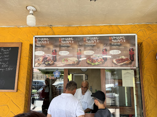 Update, май 25го. От аэропорта с его дикими ценами-20 минут пешком, есть подобие тротуара,дойти можно Есть пара-тройка блюд, включая шаурму, люля и шашлык. Цена 1.200 драм за любое блюдо. Cola 0,5 стоит 400 драм Карты мир принимают - уже нет. Но оплата не российской кредитной карточкой прошла без проблем. Если такой карты нет, при наличии карточки ВТБ можно снять наличку в аэропорту в банкомате ВТБ Есть вай фай, пароль фиг найдёшь, поэтому пароль -их номер телефона, его видно Бывает время, когда мясо для шаурмы жарится, нужно ждать минут 10-30 Туалета нет, стульев нет, просто столы,у которых все стоят - есть отдельный зал, где можно сесть и спокойно поесть, Много местных набирают прямо по несколько штук, возможно я не особый ценитель шаурмы, но по мне-вкус на 4ку, Но заморить червяка - очень хорошо....
