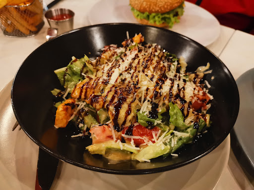 The food was excellent—we had burgers and roasted potatoes, both full of flavor and clearly made with quality ingredients. The red wine was pleasantly light and easy to drink, a great pairing...