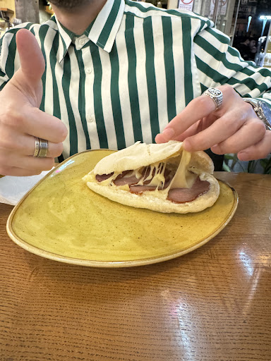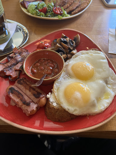 Nice place. Convenient location. Almost no parking. friendly staff. Wheelchair accessibility - 2.5/5. The food and drinks here are average. I ordered English breakfast here three times and all three times they brought me literally raw eggs. every time you have to squirm around in an extremely unappetizing substance similar to mucus. The cafe management should admit that sunny side up eggs should not be raw! a raw egg is not the same as for instance rare steak. There should be no completely raw liquid on top of the eggs! it doesn’t look appetizing and is unpleasant to eat. The last time I asked to fix it, the cooks took the eggs back that I had already picked at trying to remove the mucus on top of the scrambled eggs and simply fried them on both sides. However, aside from the sunny side up eggs problems, there are some not-so-bad hashbrowns here. the bread was delicious. The coffee glasses are very beautiful. If the problems with the sunny side up eggs are fixed. I can give it a rating of 4/5. because it's an average but cute inside and staff are nice. It's not bad, but there's nothing outstanding...