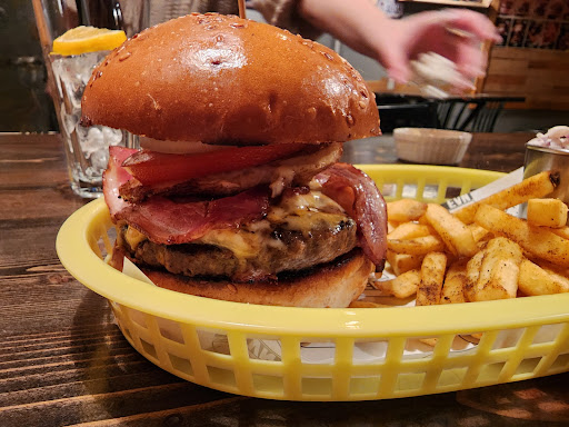 Read moreThe U.S. roadhouse atmosphere starts from the leather dog collar handle for the front door and continues inside with heavy metal tunes on the speakers and, incongruously, Nickelodeon 'toons on the big TV screen in the dining area. The burgers are tasty, with fresh ingredients, and the various sides such as onion rings and deep-fried pickles help round out the roadhouse vibe. Some nice beers as well (a couple Dargett varieties on tap). The only thing missing is sawdust on the floor, but I imagine there are regulations against doing that--well, okay, maybe...
