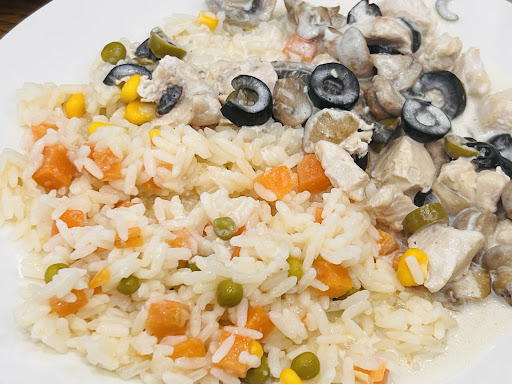 В кафе есть два выбора еды: первое — это что-то типа домашней еды: салаты, вторые блюда и т.д., второе — фаст-фуд.