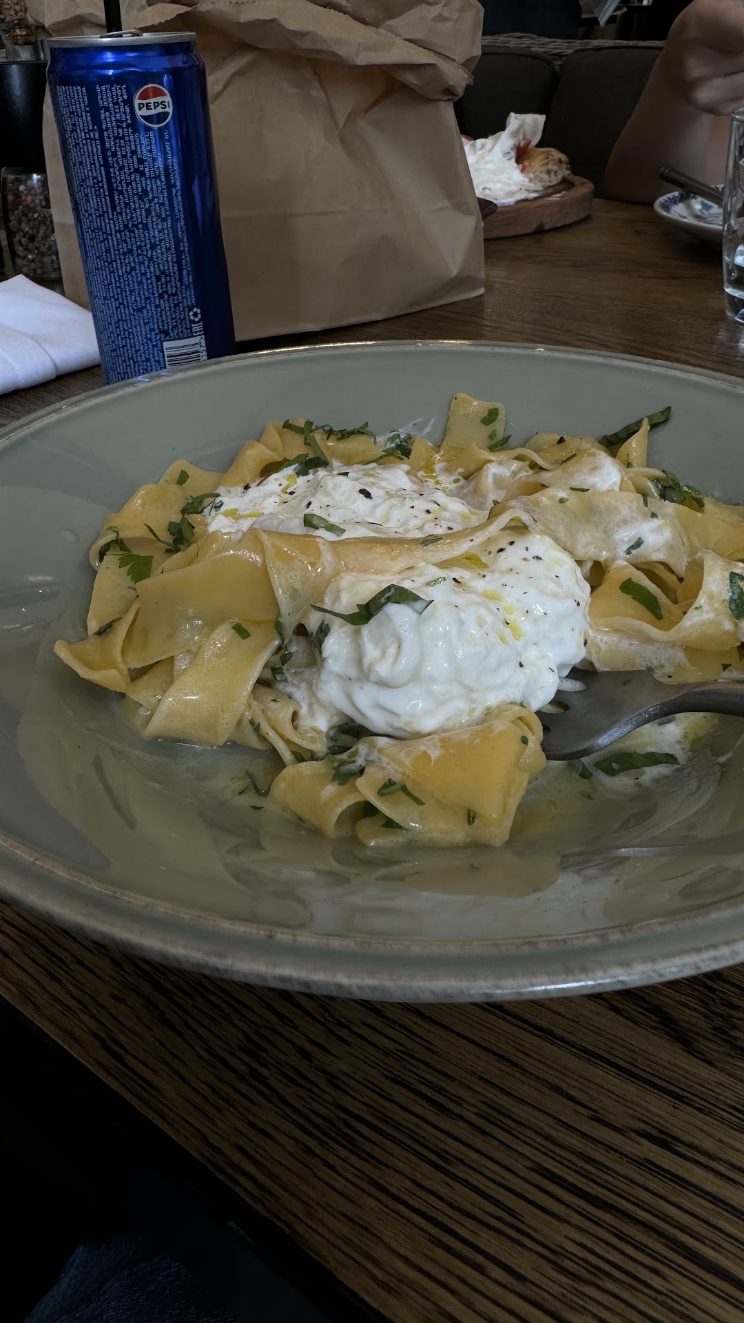 The stracciatella cheese in the arugula salad was delicious but the tomatoes in the salad were not of acceptable quality seeing it is August.