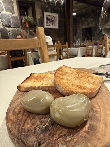 Read moreCame here by friends recommendation and we're very disappointed. Place is priced significantly above average, like top Yerevan restaurants. Our experience: Restaurant is located in creepy cellar, there is no premium feeling there. Nobody greeted us at entrance, we had to go inside and find staff ourselves. Waiter was wearing casual clothes and T-shirt, like she is at home. Few staff members were roaming around everybody also wearing casual dress. We ordered appetiser - liver paste and it came in a very small portion, taste was ok, it came served on a stone but paste was rock solid. So basically you can cut and it eat it, but you can not spread it on bread. And there was no bread coming with it. We asked for bread and waiter brought to us few pieces of terrible bread, there tasted like it was made couple of days ago. At that point we decided not to explore menu further and left. Kind of place that pretend to be restaurant...