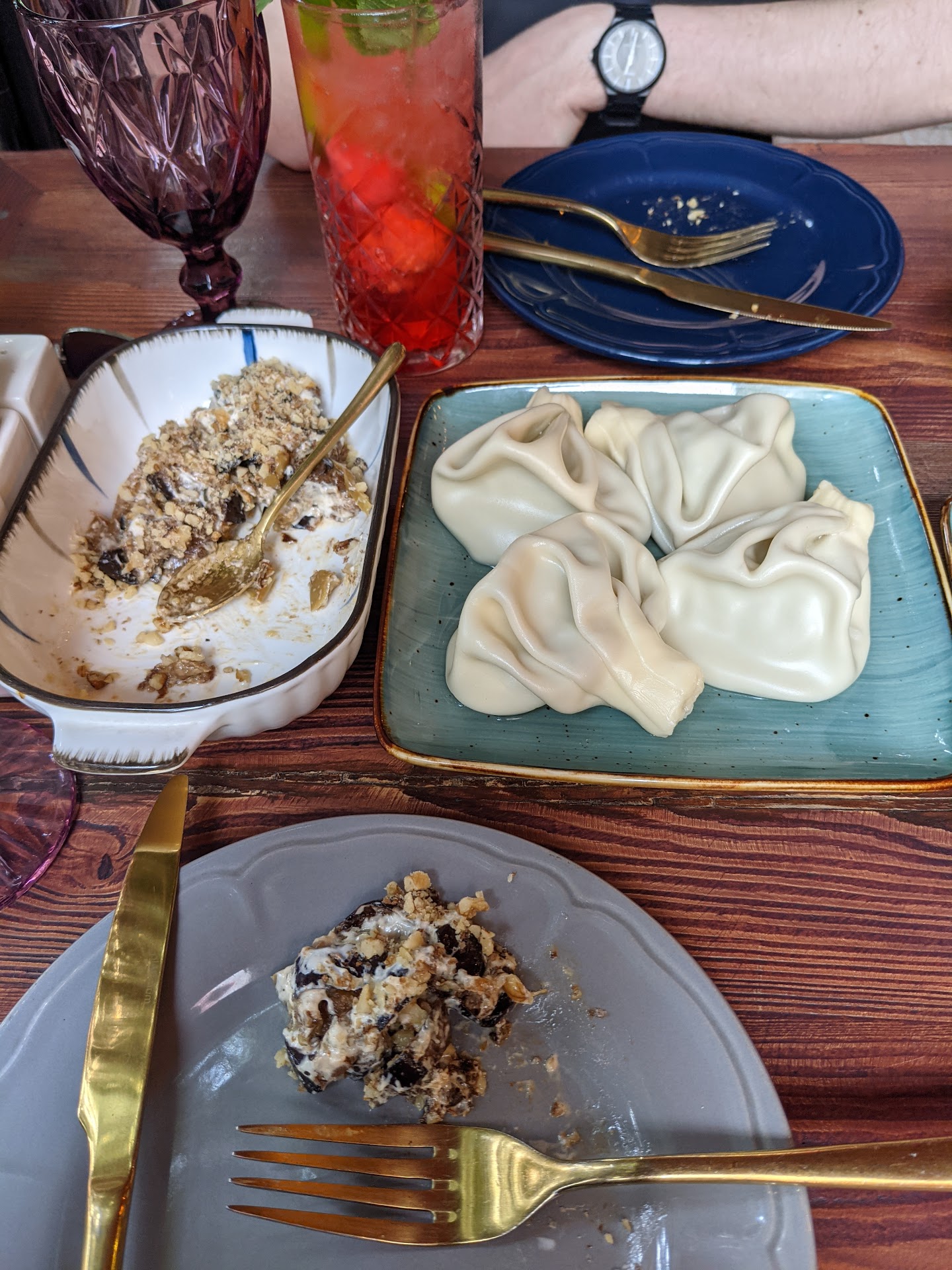 Now, on to the food. We decided to try their renowned khinkali, omelette, and grilled vegetables. Despite the restaurant being named "Tumanyan's Khinkali," the khinkali fell far short of expectations. They had an insufficient amount of meat, lacked the flavorful bouillon one would expect, and were surprisingly overpriced.