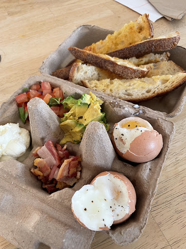 Not a good experience, unfortunately. I have been a few times previously and enjoyed the food, so much so I've recommended it to my customers. After this visit, I wouldn't suggest it again. Each luke warm drink came out in 10 minute intervals. We were the only patrons there, yet it took 45 minutes for the first plate to come out. The three of us without food were left to watch the one with food eat. 15 minutes later the second came out, but the first person had already finished, so it was back to the three without watching the one with food eat. It may have been tolerable if the food had been served hot. There was no apologies for the delays or any sense of urgency to get the orders out in a timely manner. The menu is over-complicated with basic staples being left out. No bacon & egg rolls, eggs on toast or even plain toast with spread to be seen. Instead your selections are limited to undercooked poached eggs, questionable salmon bagels and french toast that hasn't even looked at an egg and takes over an hour to prepare. Give this venue...