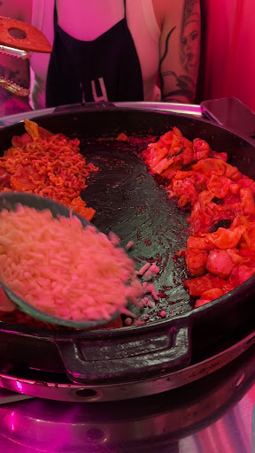 The four of us ordered the “Feed Me” set as recommended by the staff. The 3-person set costs $147, while the 4-person set is $196 — that’s an extra $49. And guess what we got for that extra $49? Just ONE seaweed glass noodle roll and ONE fried dumpling. That’s it. All the other side dishes, even the main Cheese Dakgalbi, were exactly the same as the 2-person or regular set portion. Even the fried chicken for four people was only half a portion. The main dish quantity was also the same as one regular set — definitely not enough for four people. We were originally going to spend around $200 for two sets, but the staff suggested the Feed Me option, saying it’s more suitable if we’re hungry. Turns out, it’s the exact opposite — the Feed Me set had less food than two regular sets and was absolutely not worth it. Halfway through the meal, we were still hungry and asked if we could get more noodles(we’ve prepared to pay extra 5 dollars, after we complained, we finally know extra noodles are for free) The male staff said okay — but after 15 minutes, nothing came. When we asked another staff member, we found out it was never ordered. To make things worse, the male staff who was cooking chicken was extremely aggressive with his movements — hot oil splashed directly onto my friend’s hand, causing pain, and even hit our clothes. He didn’t say a word and just kept cooking. In the end, they gave us a 10% discount (since it was a public holiday we still paid $208), but it didn’t make up for the $49 difference or the overall disappointing experience. The pricing makes no sense, the service was chaotic, and if you’re actually hungry and looking for a proper meal — don’t order this. Their math is terrible. Maybe it’s okay if you’re just there for a date or to take cute photos, but for four people who genuinely want to eat — you’ll leave hungry...