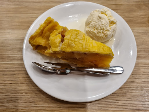 Read moreNo table service, you order at the counter. Coffee is consistently good. I order lactose-free milk for my coffee. They have it. The coffee comes out almost immediately. Sometimes the selection of cakes are stale. I ordered bacon & eggs on toast once where the bread was clearly "toasted" by holding a match under it! It was bread & I didn't have time to ask for the meal again. Next time, I shall order the yummy coffee only. The waiting staff are all very pleasant, too and efficient. Tables are cleared & cleaned straight after...