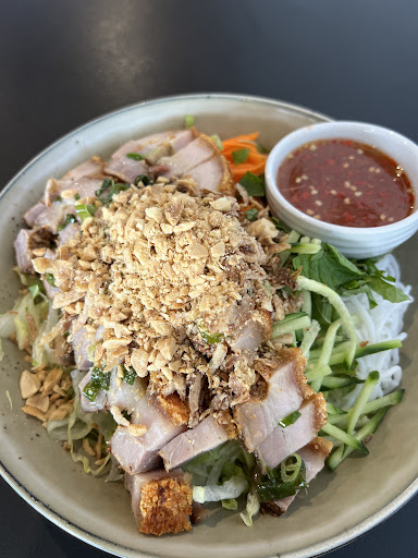 I am here right now and this is my very first restaurant review ever and MUST leave the best review.๐๐๐ I love healthy vietnamese food so I have tried lots of viet restaurants and takeaway shops. I definitely can tell this place will be my favorite. Ordered crispy crackling pork rice noodle salad and Vietnamese iced coffee. Friendly staff with beautiful smile served me and when I asked less sweet Vietnamese iced coffee (love it but not a big fan of condensed milk), she made it fresh for me so that I could adjust sweetness. Pork and vegetables are incredibly fresh! And look at the photos.. I never thought I could finish this huge dish but.. I DID! Nice and clean pleasant atmosphere to dine in. I might come back tomorrow with...