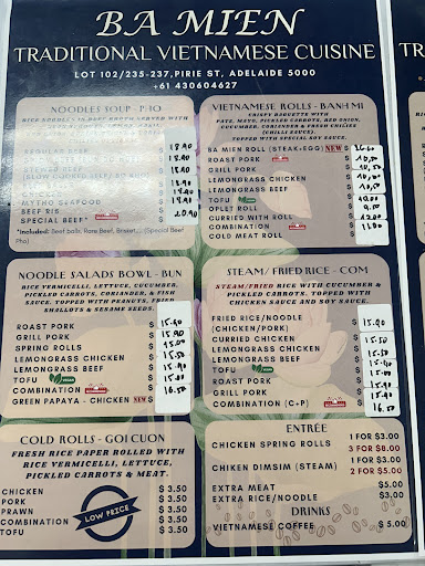 The culinary offerings at Ba Mien are nothing short of spectacular. Each dish is freshly prepared, bursting with flavors that transport you straight to the streets of Vietnam. Whether it's something refreshing to combat the heat or a comforting hot soup to warm you up, the menu caters to every craving. While the drink options might be limited, the focus on simplicity and quality shines through, complementing the meal perfectly.