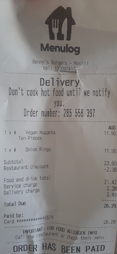 Read moreHad an absolutely horrible experience tonight. We ordered from menulog, specifically because they had vegan nuggets on the menu. We placed the order and the food arrived in good time, no issues with menulog or the delivery driver. However, there were two bags of onion rings and no vegan nuggets. I checked the receipt to make sure I didn't make a mistake... thankfully, I hadn't.