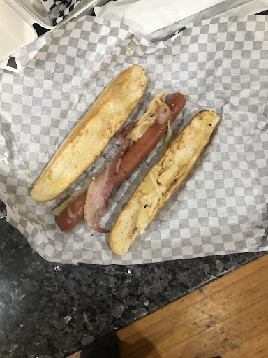 Misleading menu items We bought 2 x hot dogs @ 11.95 each and were not given a full hot dog. The restaurant tried to pass two quarters of the hot dog roll off as a whole hot dog. In trying to order 'Deal One', they had it advertised at 19.95 which comes with one burger, standard chips and drink. When trying to order, you have to add a drink for $3.00 which means you HAVE to pay 22.95. This is misleading or deceptive conduct, so we forewent the drink and just a single chips. The burgers were not pleasant; the chicken had a very weird texture, as if it was frozen...