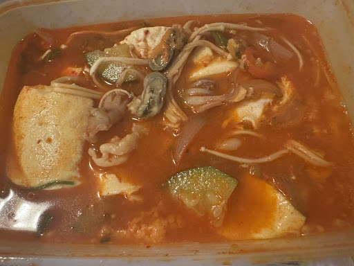 Read moreThis place was so packed with customers when we dined there on a Thursday evening. (speaks volumes about the quality of this restaurant). The waitress was quick in seating us and taking our order, but we did have to wait a long time to receive our meals. (understandable due to how busy they were). When our meal arrived, we were extremely happy with how tasty it was. My Wife had kimchi mandoo and I had prawn mandoo for an entree, and for our main dish, My Wife had JAPCHAE and I had JE-YUK SPICY PORK. Both were sensational. Full of flavor. Then at the end of our meal we had a surprise when we were offered a free desert to make up for us waiting for our meals to arrive! Nice touch! (my only gripe was that if you are a chilli lover, and you request a lot of chilli in your dish, you will be disappointed) So over all, our first impressions of this place were positive, and we will definitely go back again, but when they are not so...
