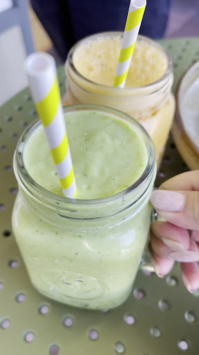 We sampled some delicious food; đ Fresh shucked oysters đ Tropical AçaĂ Bowl đ crispy granola with Vanilla Pannacotta đ Pesto chicken & bacon sandwich đ cheese balls đ Fish tacos đ Chicân tacos đ iced coffee / cappuccino đ green smoothie đ mango juice
